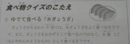 答えは「1.ゆでて食べる水ぎょうざ」でした。
