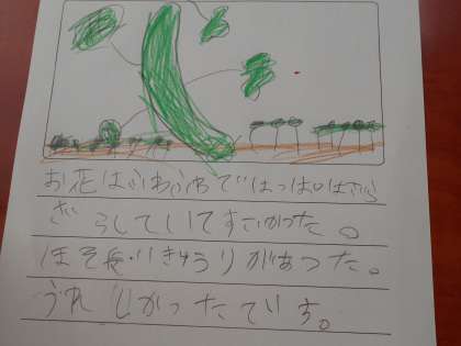 とても大きく実った野菜の大きさや色、形などをよく見て、カードにわかりやすい文で書くことができました。