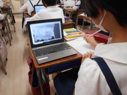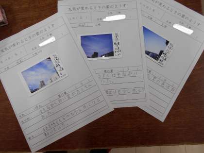 1日の雲の様子を写真で撮り、色や大きさ、形などをくわしく観察しました。