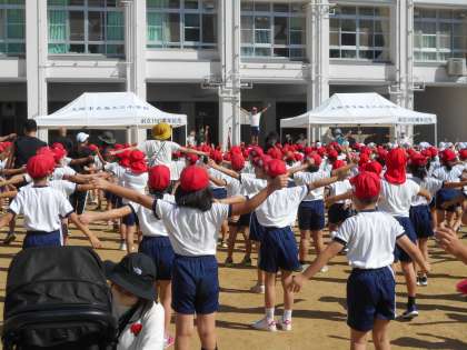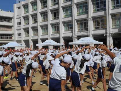 代表の児童が前に並び、下級生のお手本となって、体操をすることができました。