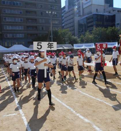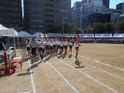 国旗や校旗、優勝旗、優勝杯などの後に5・6年生が堂々と行進しました。