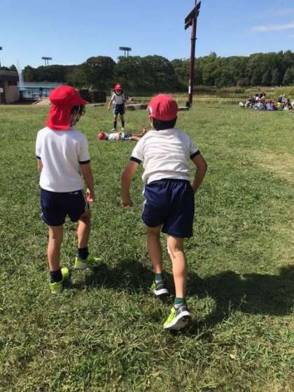 お弁当の後は芝生のところで元気よく走り回ったり、寝転んだり、みんなあそびをしたりしていました。暑いぐらの好天でした。