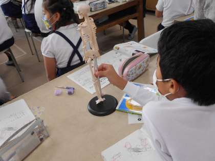 実際に体を動かしたり、がいこつの模型を触ったりしてグループで探しました。