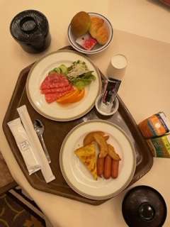 朝ごはんです。通常はバイキングですが、あらかじめ1人ずつセッティングされています。ご飯をおかわりしている子もいます。朝から元気です!