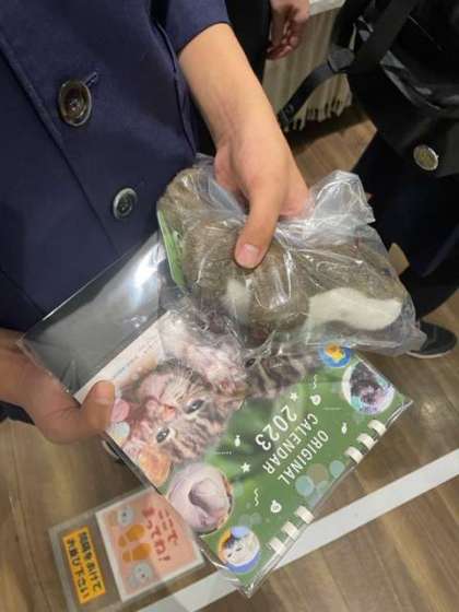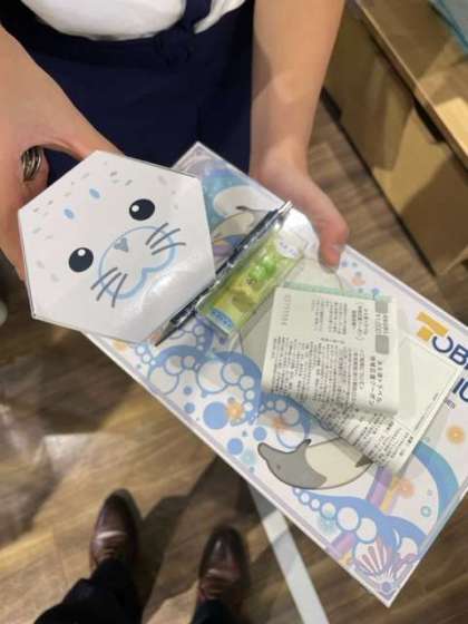おみやげコーナーでは手におみやげを持った子が並んでいます。