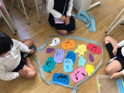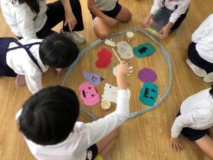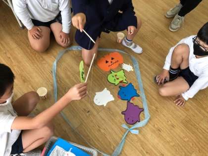前回の「うめのみタイム」で作ったおばけを使って、「おばけつり」をしました。