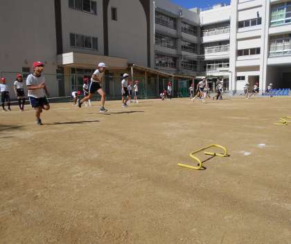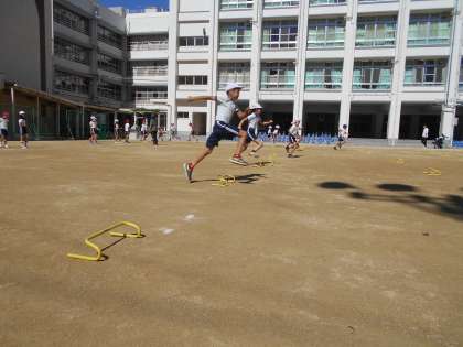 ハードルとハードルの間の歩幅を決めて、できるだけ同じ足でミニハードルを跳び越えることを意識しました。