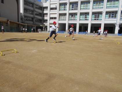 4つのミニハードルを跳び越えてゴールまで走りました。