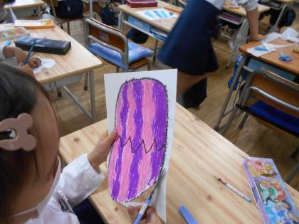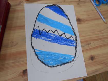 たまごの殻をクレパスで丁寧に塗り込んで、色鮮やかなたまごができました。