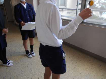 班で月・太陽・地球の役割を分担し、交代しながら月の形を観察しました。