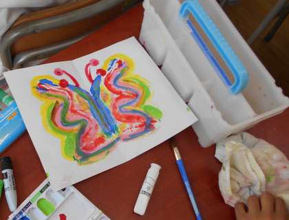 画用紙を開くとどんな模様になるのかを想像しながら絵を描くことができました。
