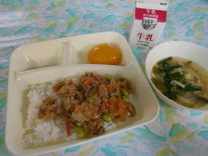 今日の給食に出た中華スープの中には「にら」が入っています。
