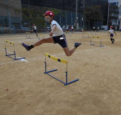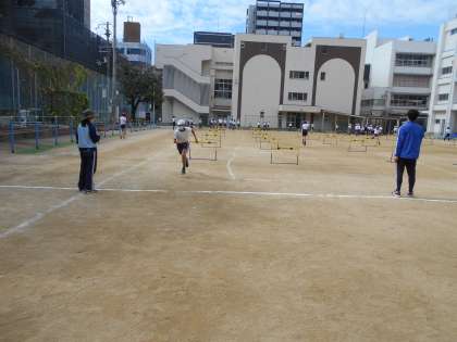 ハードルとハードルとの距離や、ハードルの高さが異なる6本のコースの中から、自分が一番跳びやすいコースを選び、ゴールまで一生懸命走りました。