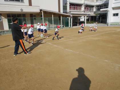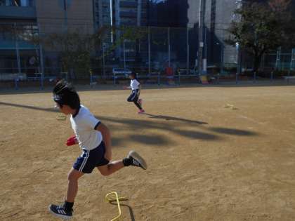 ミニハードルを飛び越えたあとも、ゴールまで力いっぱい走ることができました。