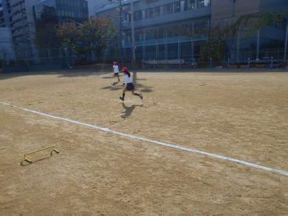 ミニハードルとミニハードルの間を3mから5mに設定し、自分の歩幅に合ったコースを選んで走りました。