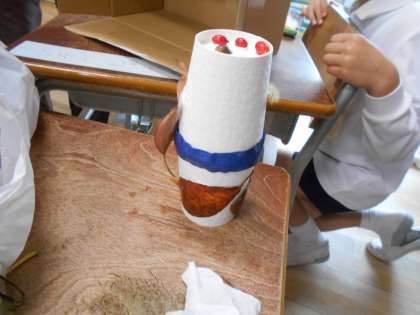 けん玉や王冠、マラカスなどのおもちゃが完成しました。