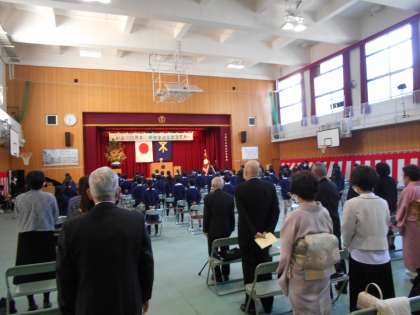 第2部は、講堂で「創立150周年・新校舎竣工記念式典」を挙行しました。