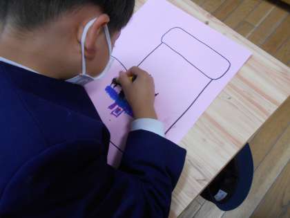 1年3組 図画工作科「くつ下の中にすきなものいっぱい」