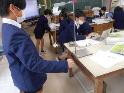 おもりの数を1個から3個へと変えながら実験を進めることができました。