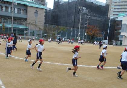今日から始まった「耐寒かけ足」に向けて、トラックを走る練習をしました。