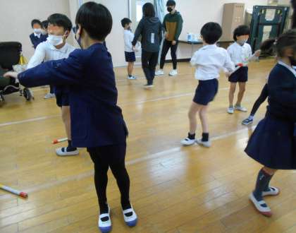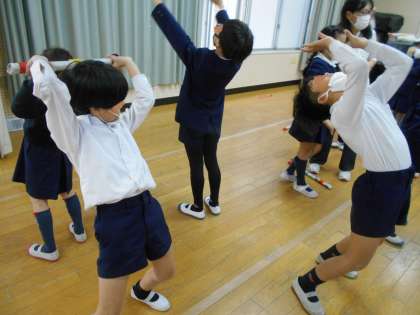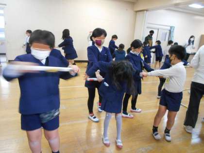 新聞紙で作った棒を使って活動をしました。