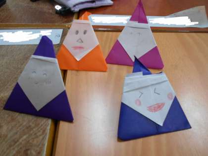 カラフルでとてもかわいいサンタクロースを作ることができました。