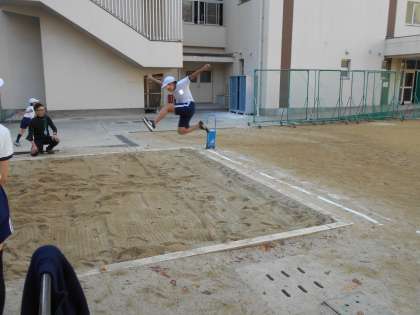 走り幅跳びでは、力強く助走し、力いっぱい跳ぶことができました。