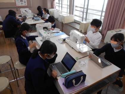直角に曲がって縫ったり、縫い始めと縫い終わりは返し縫いをしたりしました。