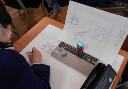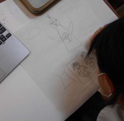 思い出の場面を画用紙に大きく描くことができました。