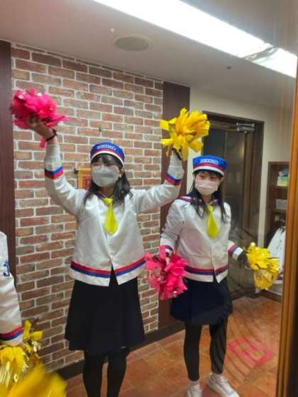 衣装をつけて、ポンポンを持ってのダンス、上から見たらどんな景色なんでしょうね。