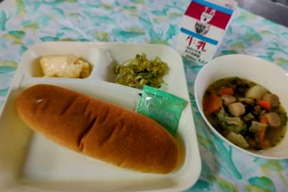 給食の「焼きプリン」は、卵、牛乳、クリーム、砂糖をまぜ合わせ、カラメルソースの上に入れ、蒸し焼きにしています。