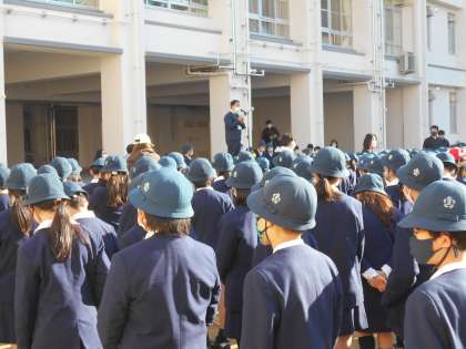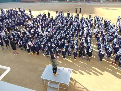全校朝会で、校長先生から廊下階段の歩き方についてお話がありました。