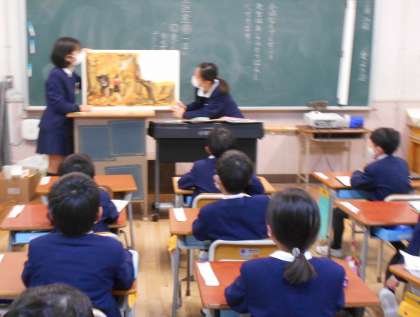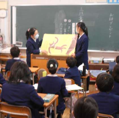 1・2年生の教室には、図書委員が絵本の読み聞かせをしに行ってくれました。
