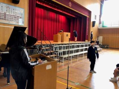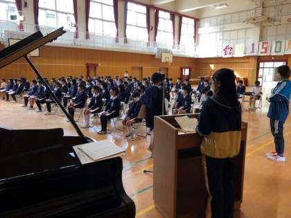 担任の先生から名前を呼ばれると、元気な声で返事をしました。