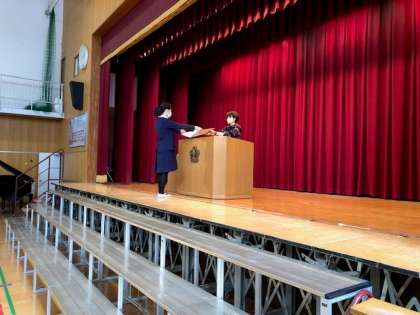 今日は、卒業証書受け取りの練習をしました。