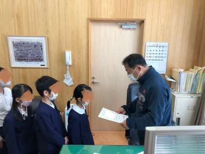 そして、読書感想画や「いのちのつながり」をテーマにした作文で優秀な成績を収めた児童、キックベースボールの試合で優秀な成績を収めた「ブルードルフィンズ」の表彰式を行いました。