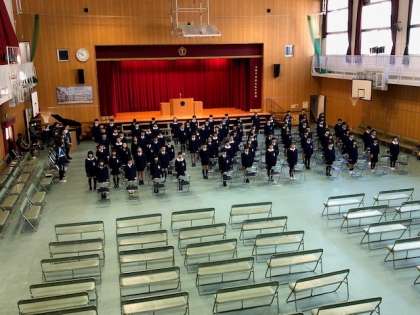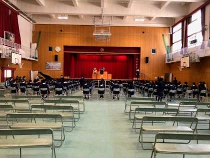 背筋を伸ばして歩いたり、大きな声で返事をしたりして、緊張感をもって取り組むことができました。