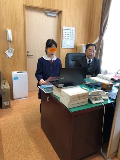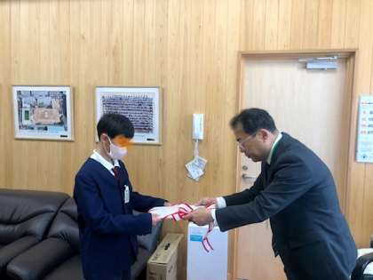 5年生の代表児童に、校長先生から修了証が授与されました。