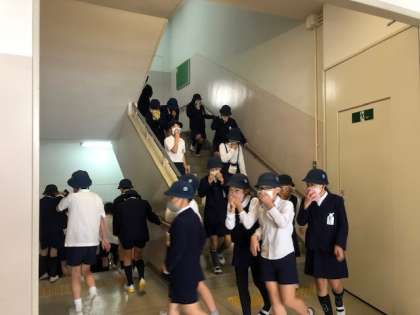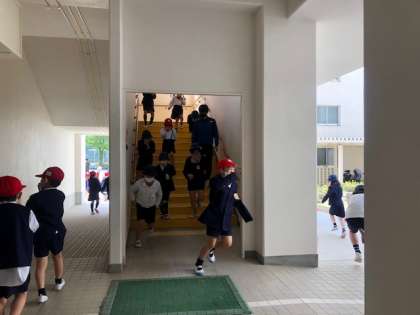 みんな新しい教室からの避難でしたが、担任の指示をしっかりと聞き、スムーズに避難することができました。