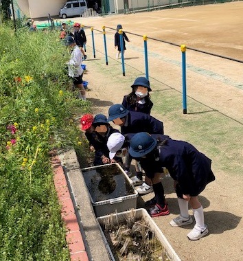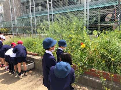 「(1年生の時に植えた)チューリップが咲いてる!」