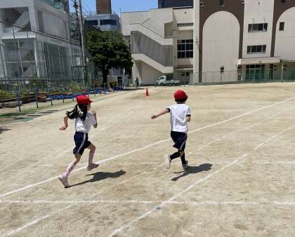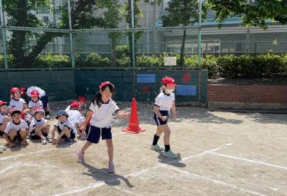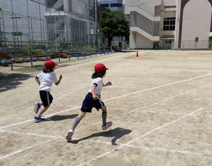 「位置について、よーい、ドン!」の合図に合わせて走りました。