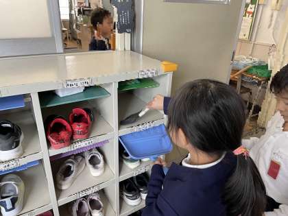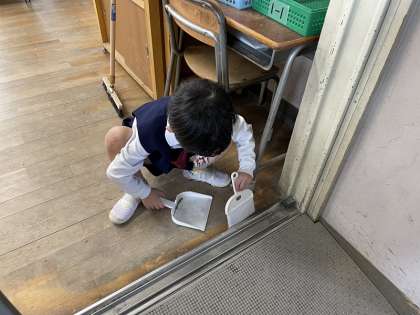 先週まで、6年生が掃除の仕方を教えにきてくれていましたが、今週からは1年生だけで掃除をします。雑巾の絞り方やほうきの掃き方など6年生に教えてもらったことを思い出して掃除を頑張っていました。