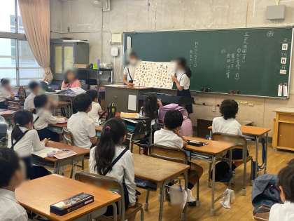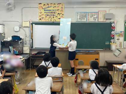 1・2年生には、図書委員によるお話プレゼントがあります。大型絵本の読み聞かせをしっかり聞いていました。