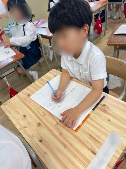 黒板の文字をよく見て、丁寧に書き写すことができました。