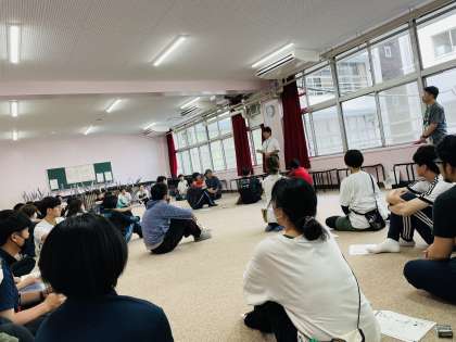 副校長先生から救急救命に関する講話をしていただき、教頭先生から救命措置の実技内容について指導していただきました。