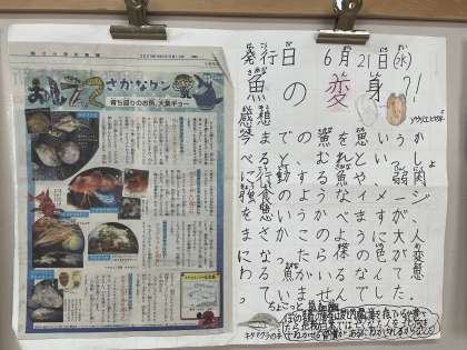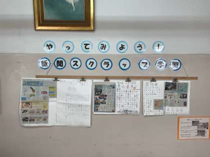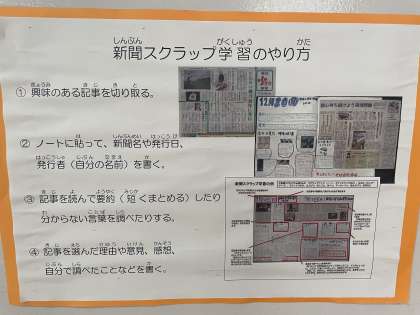 今日から、図書委員の児童が作った「新聞スクラップ学習」の掲示をします。