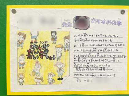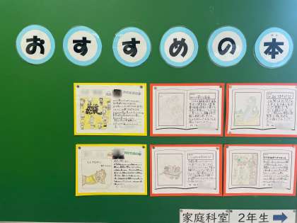 西校舎の3階の図書室前に、図書委員の児童や先生方のおすすめの本の掲示をしました。