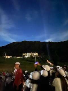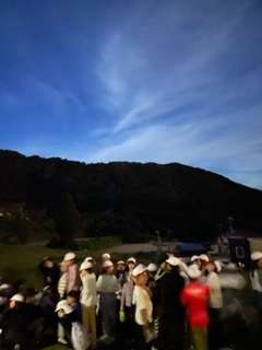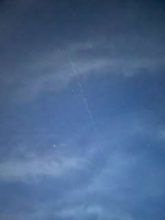 しばらく見ていると、頭上の夜空を一列に進む20個ぐらいの星?が!