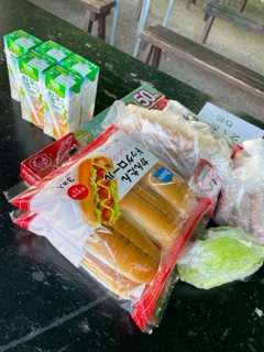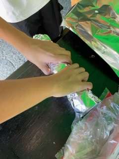 自分でパンに具材をはさんで、アルミホイルを巻いて、牛乳パックに入れて準備完了!