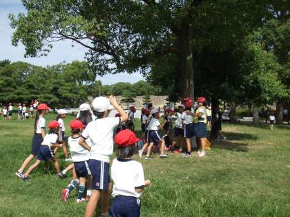 ポイントを回った後は、たてわり班ごとにお弁当を食べたり、芝生広場で遊んだりしました。最後に閉会式で、オリエンテーリングの得点発表や表彰式がありました。6年生を中心に準備や当日の役割をがんばり、爽やかな秋風の吹く中で楽しい思い出ができたようです!
